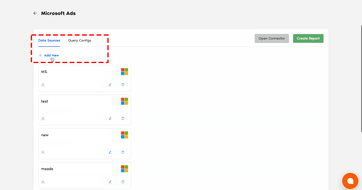 - Choose the relevant data source connector from the connectors page. In this case, click on Microsoft Bing Ads. This will take you to the Bing Ads Connector Dashboard.