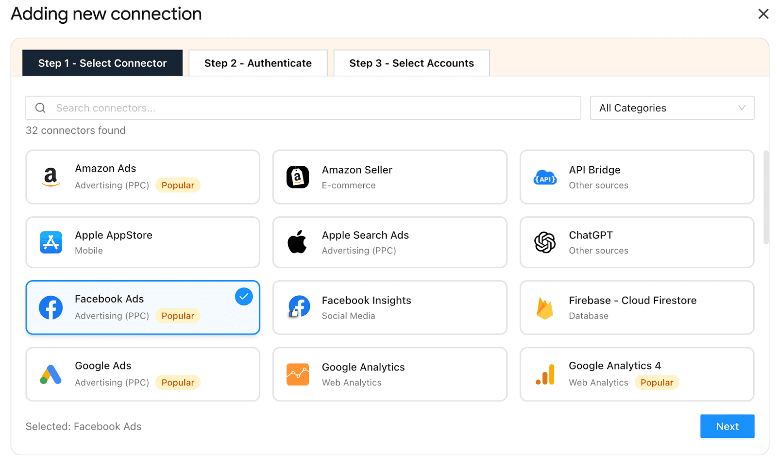 They are built for teams that want raw data sent to a warehouse like BigQuery or Snowflake. They extract data from platforms like Meta, transform it into a usable format, and load it into your storage of choice for custom analysis. Tools like Fivetran, Airbyte, and Improvado sit in this category. They require some technical setup but give you the most flexibility for custom reporting and long-term data retention.