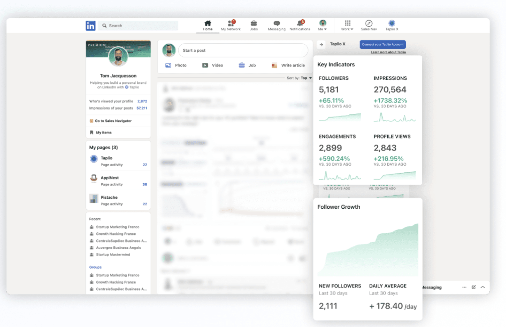 Image Source: TaplioTaplio is an AI-powered LinkedIn Analytics platform built for creators, founders, and professionals serious about scaling their personal brand. It combines content creation, scheduling, and performance tracking into one ecosystem, enabling you to move from idea to execution.