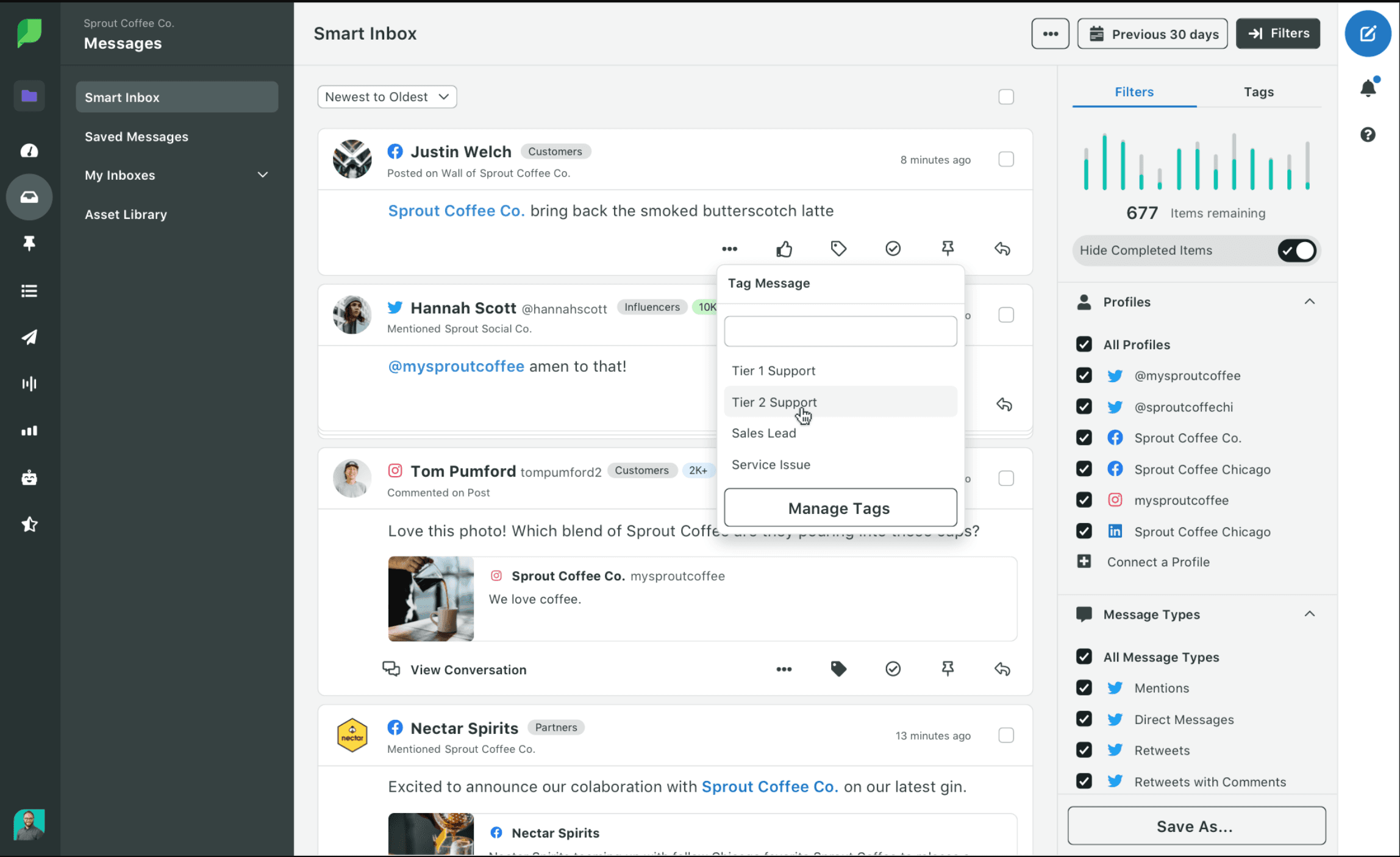- Unified social media inbox to track conversations.