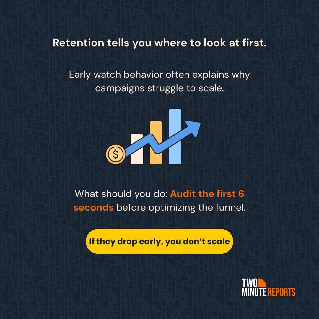 Why it matters: This tests your hook. If users don’t stay for 6 seconds, scaling becomes difficult regardless of targeting.