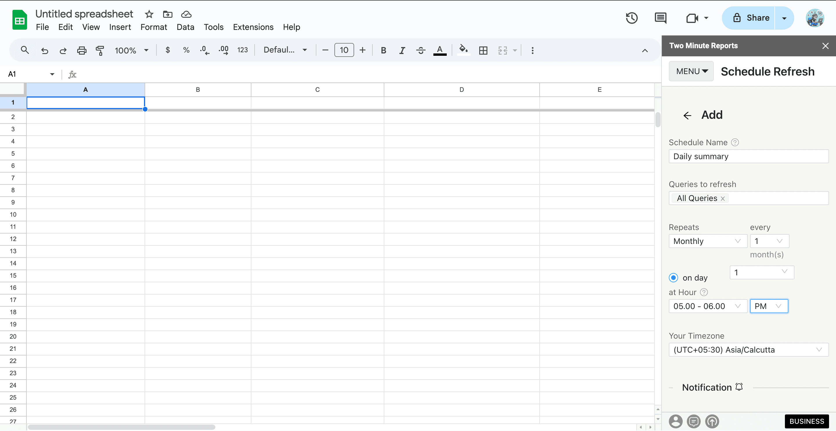 With the Schedule Refresh feature, TMR automatically refreshes your queries to the desired date, time, and duration. This feature is convenient for sending emails or refreshing your spreadsheets with live data and using them as a dashboard.