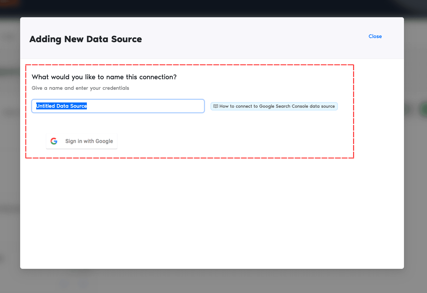 Step 1: Adding the data source and authorizing through the Google Search Console account