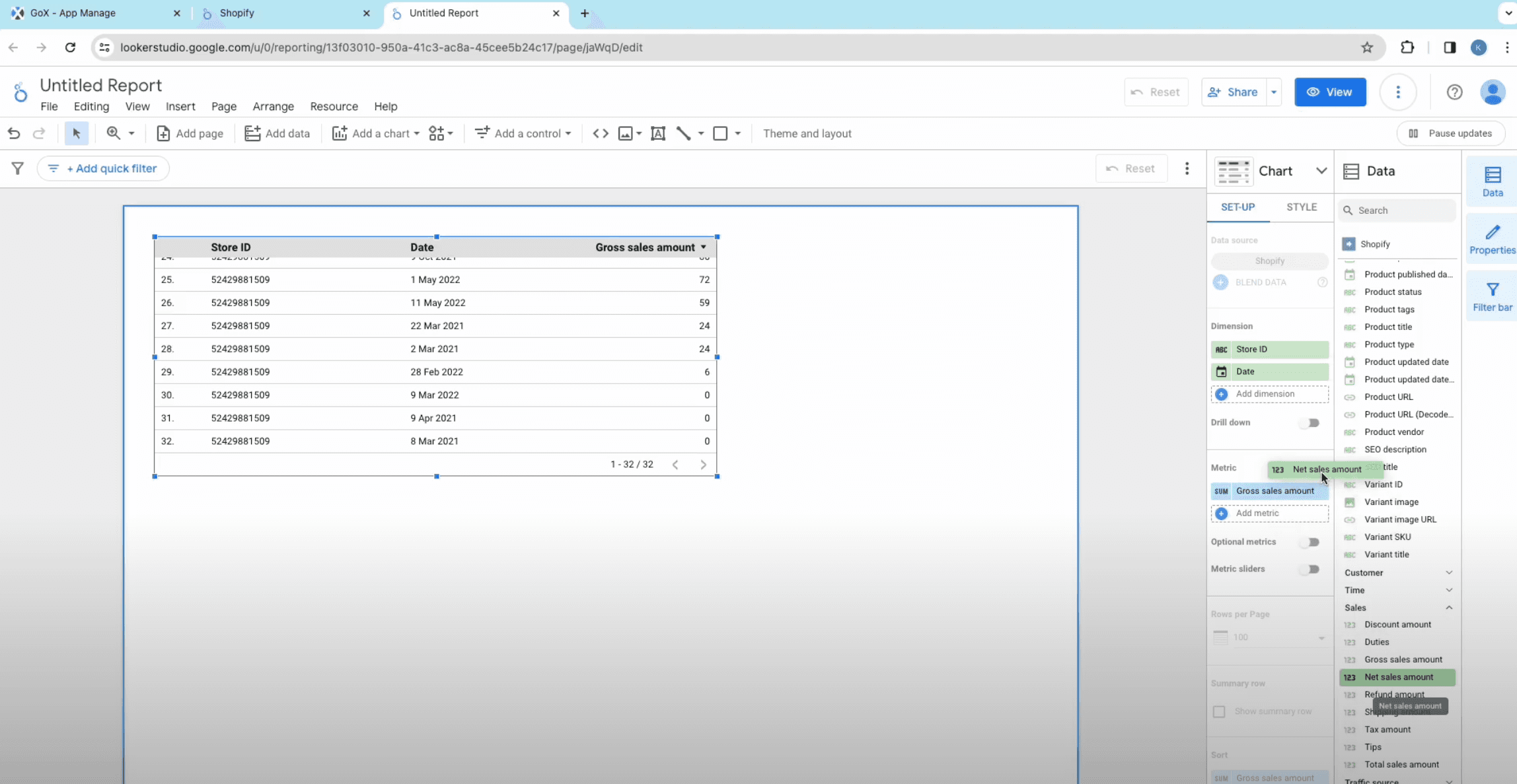 - Now watch your Looker Studio arrange all the Shopify metrics and Shopify data to create meaningful reports and help you analyze essential insights.