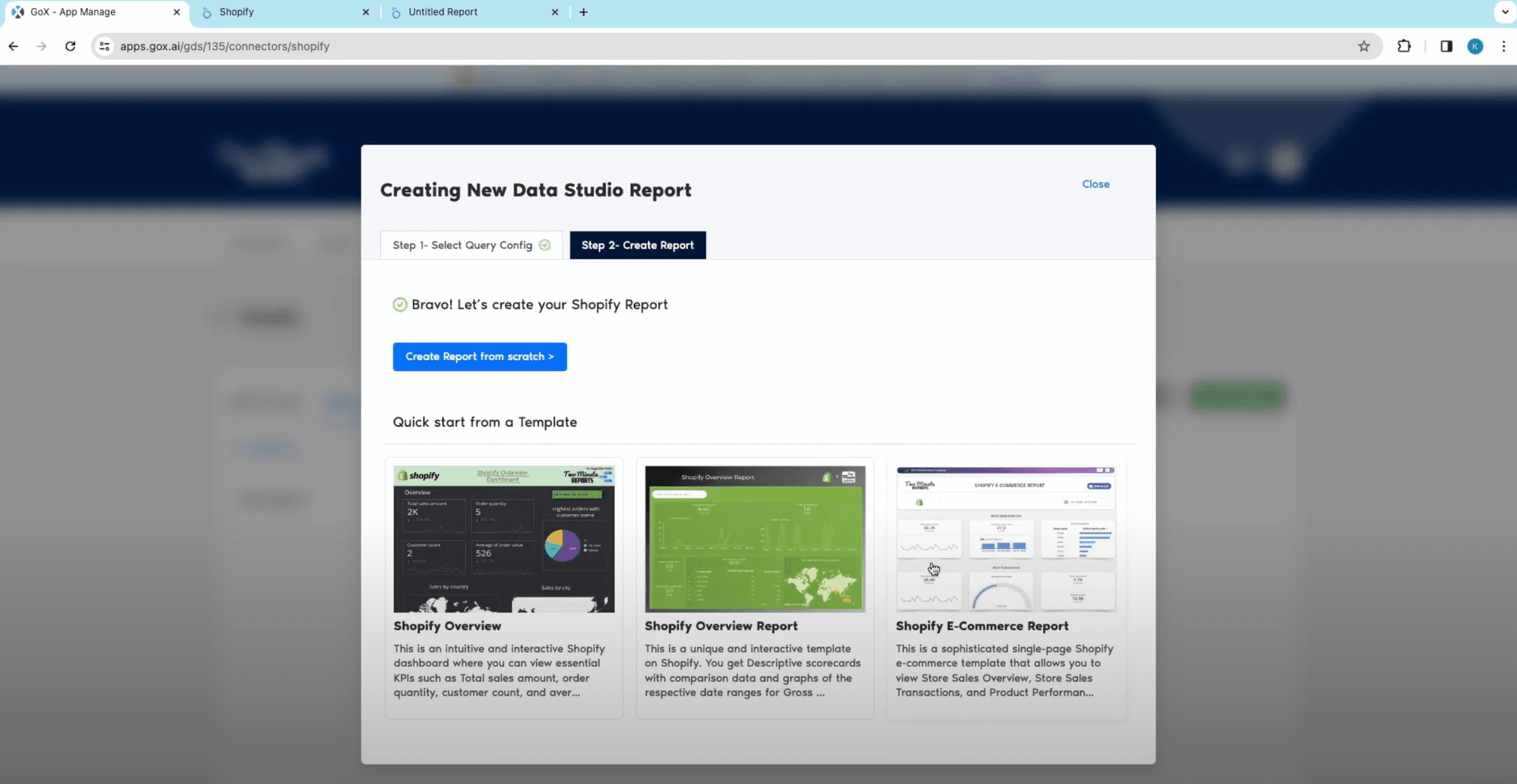 - You will have all the built-in templates specifically designed for Shopify data studio. Select the report template that best fits your needs and connect Shopify to Google data studio.