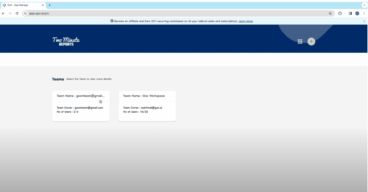 - You will see the names of all the teams you can collaborate with. Click on the team from the list to work with.